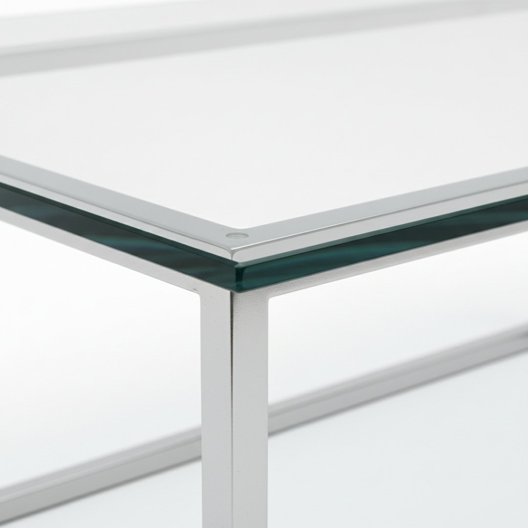 Constructed with a high-strength 10mm thick tempered glass top and a sturdy, corrosion-resistant metal frame finished in polished chrome for a sleek, reflective look.