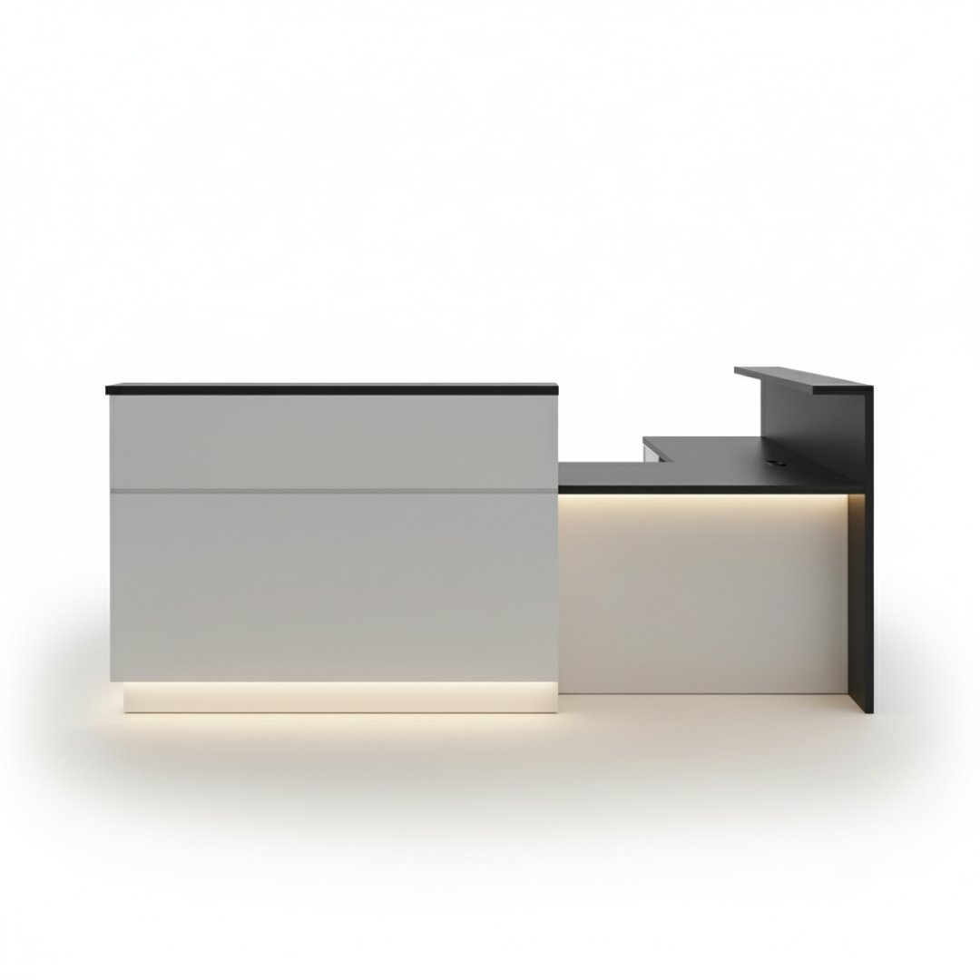 Elevate your office or salon entrance with the Avrynta Modern L-Shaped Reception Desk. This stunning welcome counter combines sophisticated style with practical functionality, creating an unforgettable first impression for every visitor. Its clean lines and integrated LED lighting make it the perfect centerpiece for any professional space.